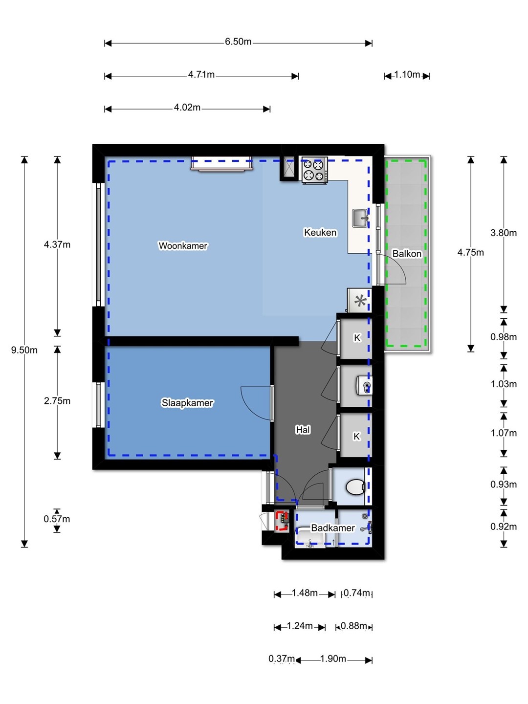 Via de gezamenlijke entree bereik je de woning op de tweede verdieping. Je stapt binnen in een ruime hal die toegang biedt tot alle vertrekken.